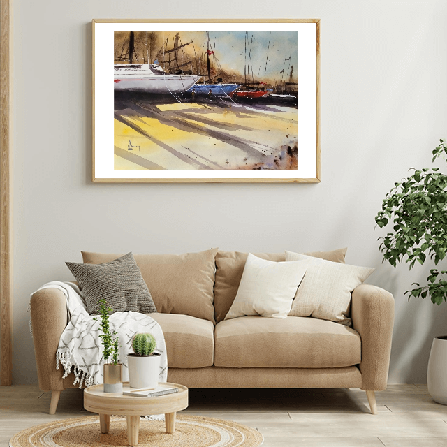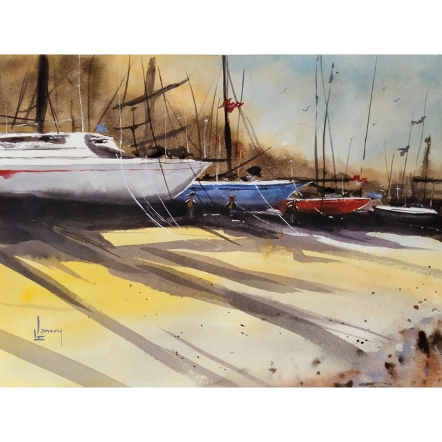 Cette aquarelle originale est réalisée sur un papier Baohong de 300 g/m², 100 % coton, reconnu pour sa qualité exceptionnelle et son excellente durabilité. Ce papier artisanal, fabriqué selon un procédé traditionnel, offre une surface idéale pour les techniques délicates de l’aquarelle, avec une absorption optimale des pigments et un rendu des couleurs fidèle et lumineux. Un bord blanc de 5 mm encadre l’œuvre, apportant une finition élégante et facilitant son encadrement.